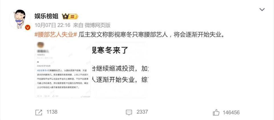 10 月 7 日,有网友爆料称,2025 年影视行业的寒风,精准刮向了娱乐圈的“夹心层”——腰部艺人。这些曾经在荧幕上混了个脸熟的演员们,如今正集体陷入“高不成低不就”的生存困局:既挤不进头部顶流的资源圈,又放不下身段去抢配角和短剧的饭碗,最终在行业洗牌中成了“批量失业”的代表。