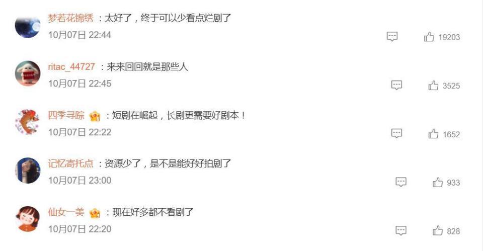 有意思的是,对这一现象,不少观众反而拍手叫好:“太好了,终于可以少看点烂剧了!”“来来回回就是那些人,早该换换血了!”越来越多人认为,行业资源收紧或许是好事——逼着制作方回归剧本,逼着演员打磨演技。短剧在崛起,但长剧更需要好故事;资源少了,是不是能好好拍剧了?
